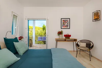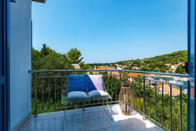 Spacious suite (30m2) with its own dressing-room, private bathroom and unique view over the bay from the balcony.