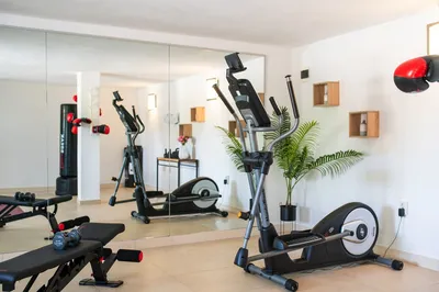Free weights, elliptical machine, boxing bag, yoga mats… Everything you need for a good workout!