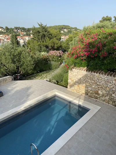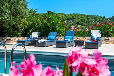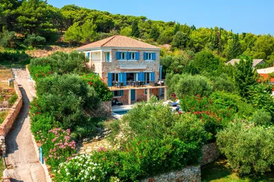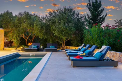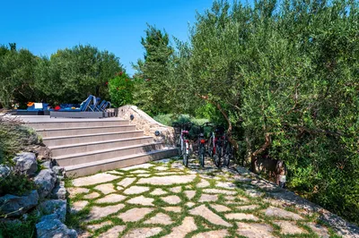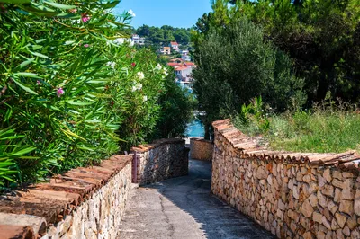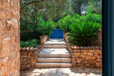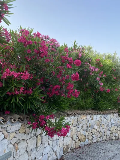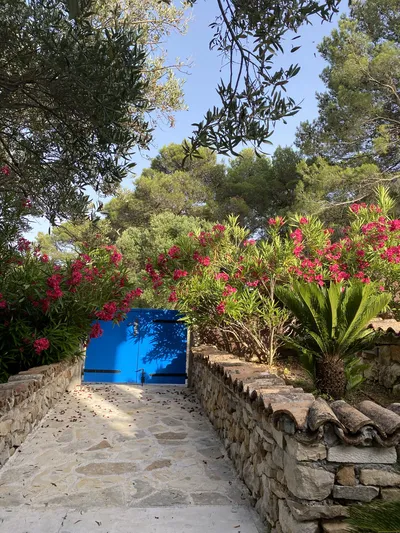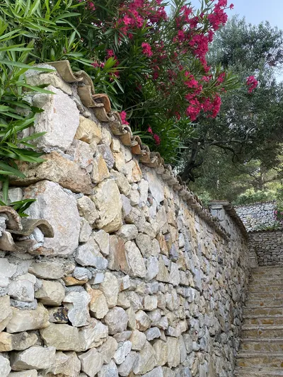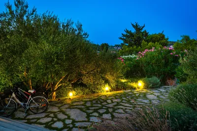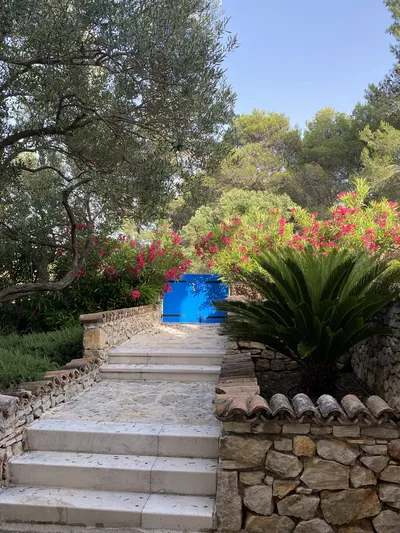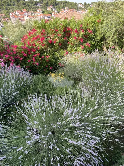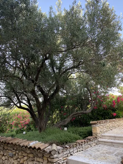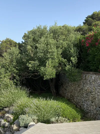Typical Mediterranean garden, with Olive trees, Lavender, Rosemary, Oleanders.